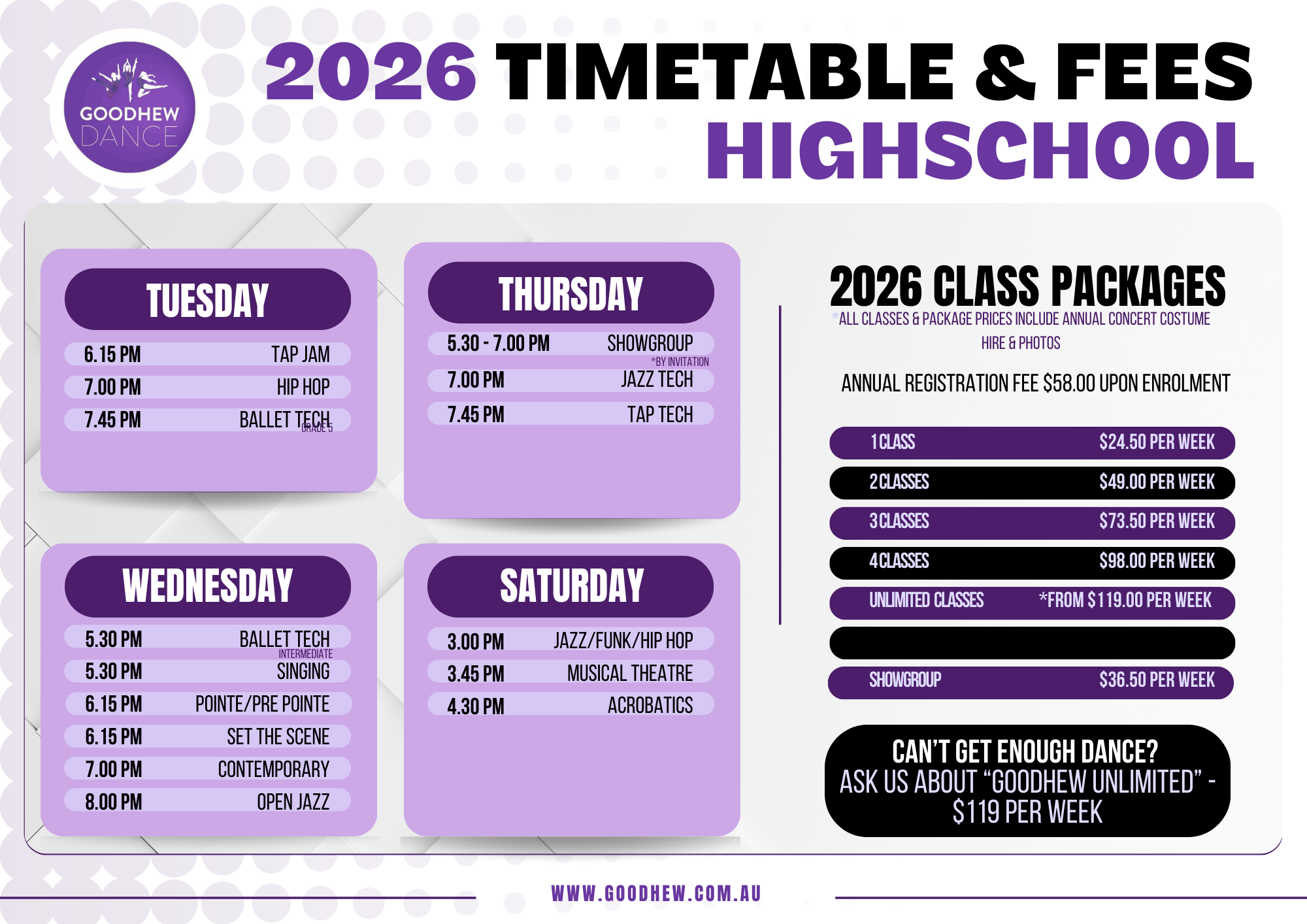 These years are filled with so many wonderful opportunities to learn and make friends. At Goodhew Dance, we love being part of your child’s education, not just in dance but in becoming a confident and accomplished young adult.